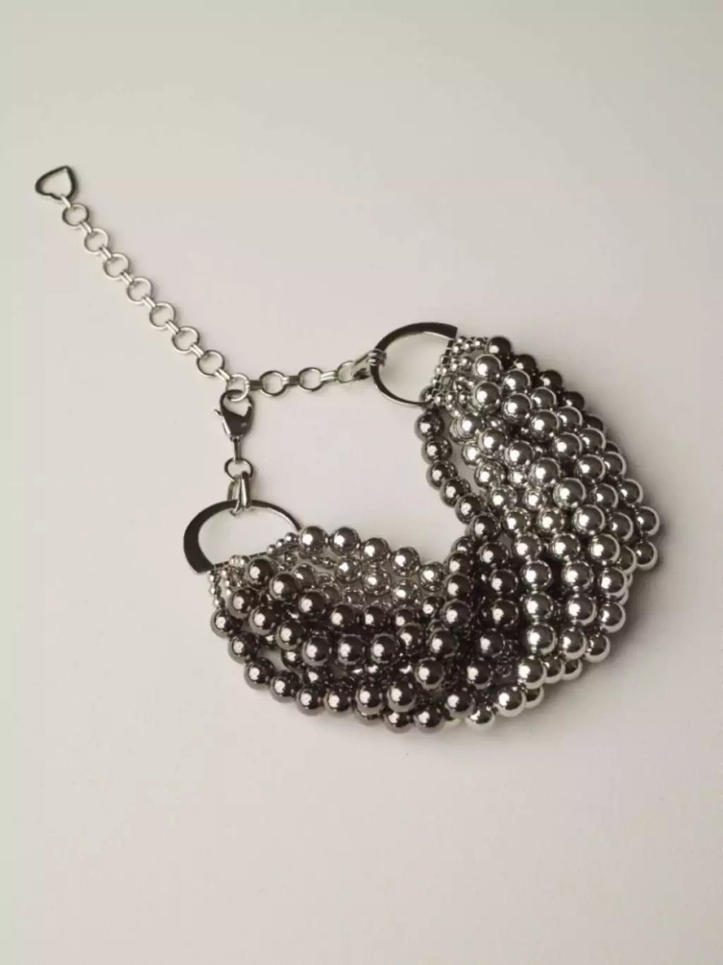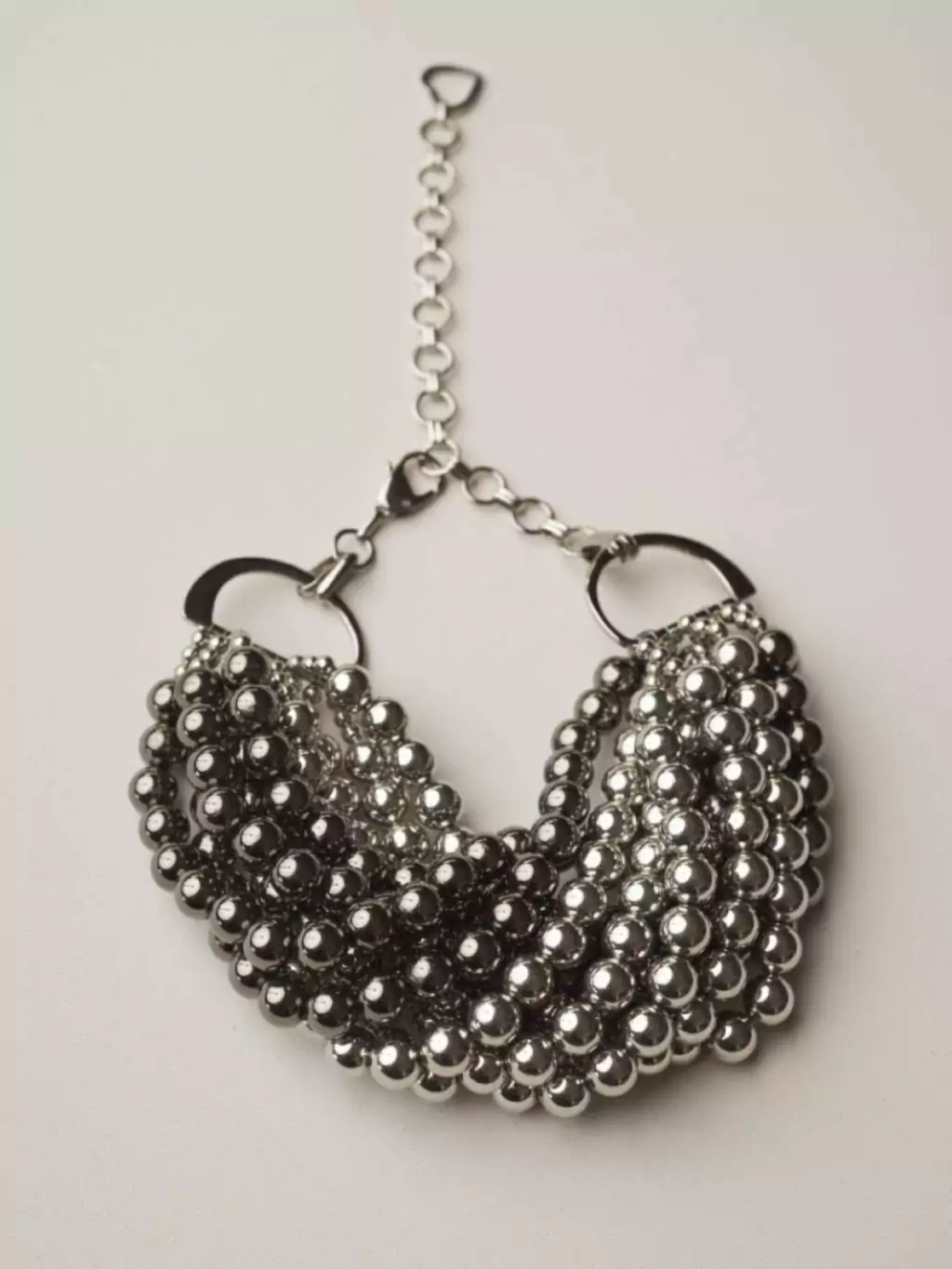 O colar Callas é um colar com várias voltas torcido, feito com bolinhas de resina especial que permite o mesmo banho aplicado aos metais, disponível nas cores grafite, prata, ouro, mix ou pérolas, tem acabamento de metal e fechamento ajustável. Faz parte da Coleção Atelier.
